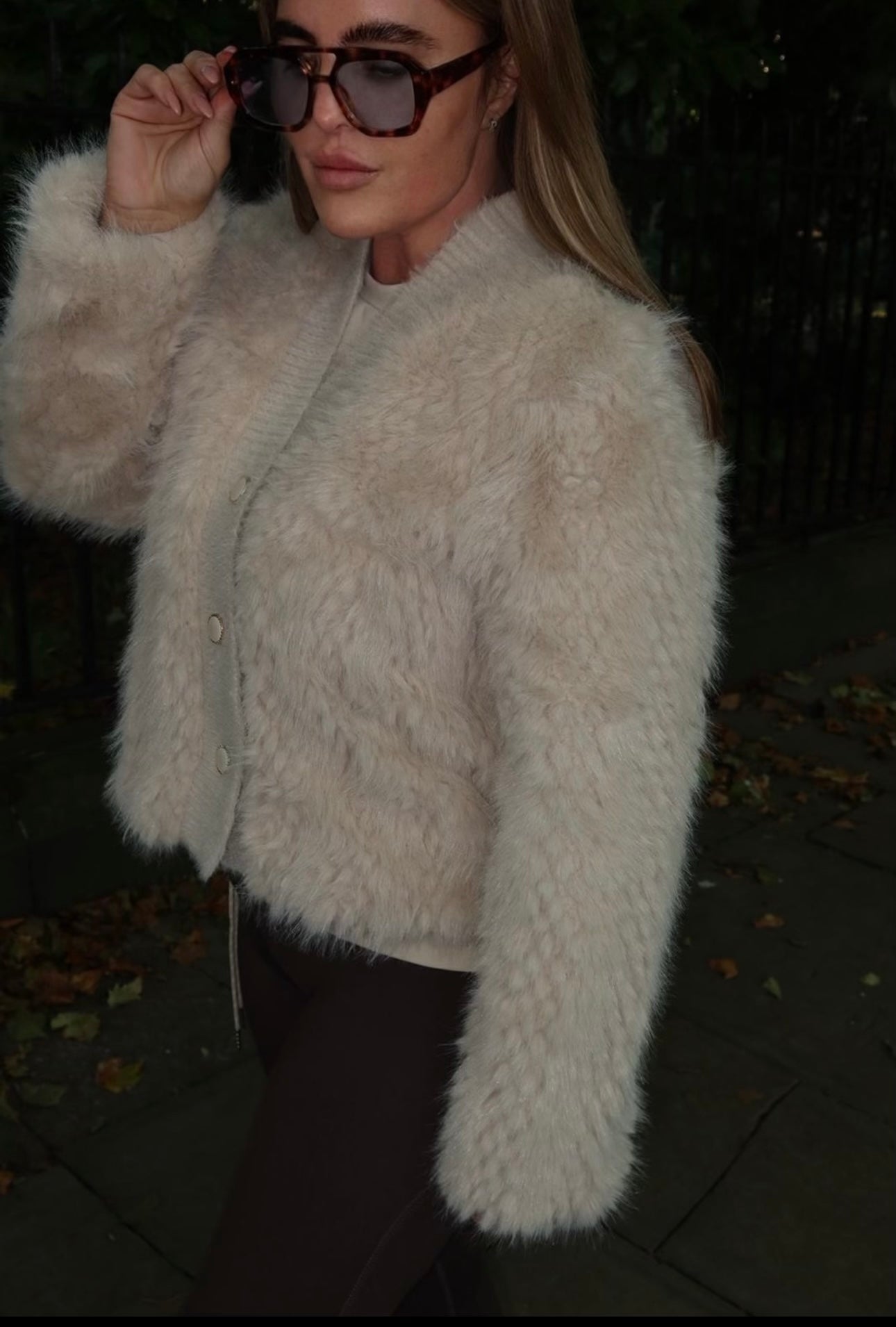 Fur Woollen Cardigan – A luxe heavyweight knit with plush faux-fur detailing. Warm, stylish and effortlessly chic for the colder months.