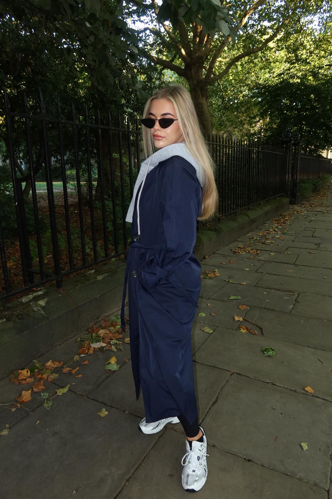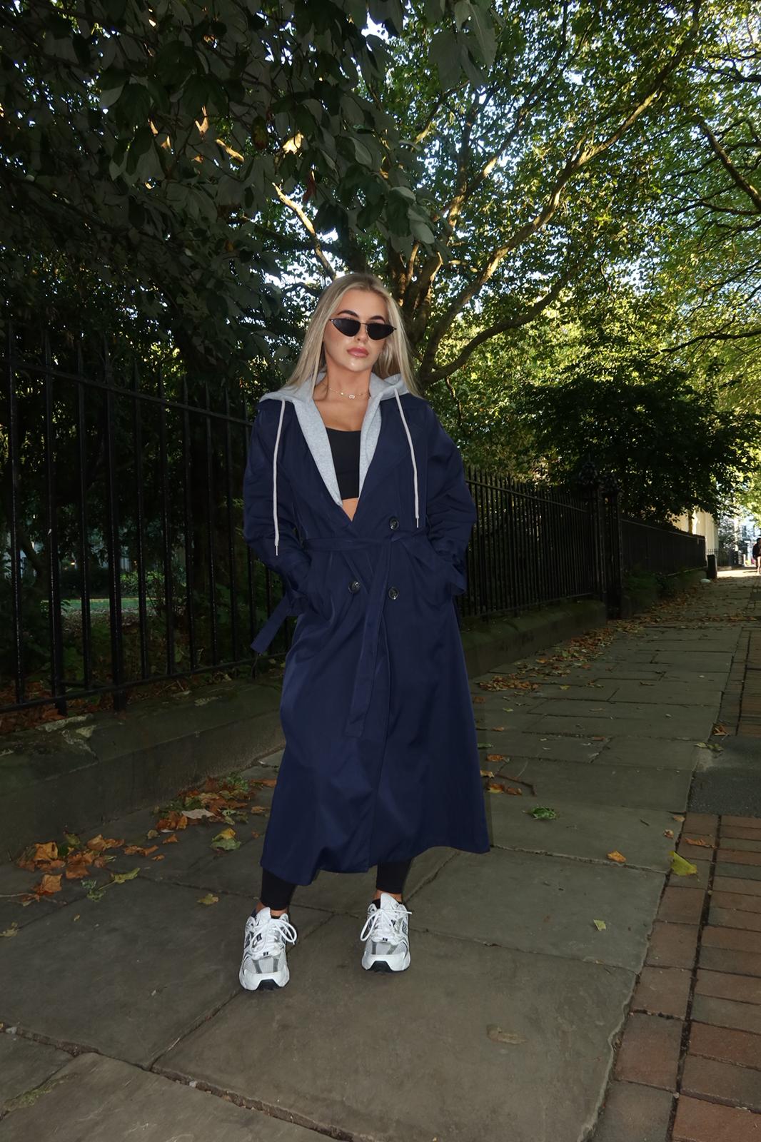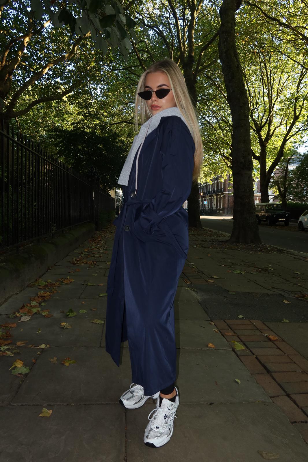 “Step out in style with our navy trench coat – a timeless classic in a rich, versatile shade, crafted for effortless elegance and all-season wear.”