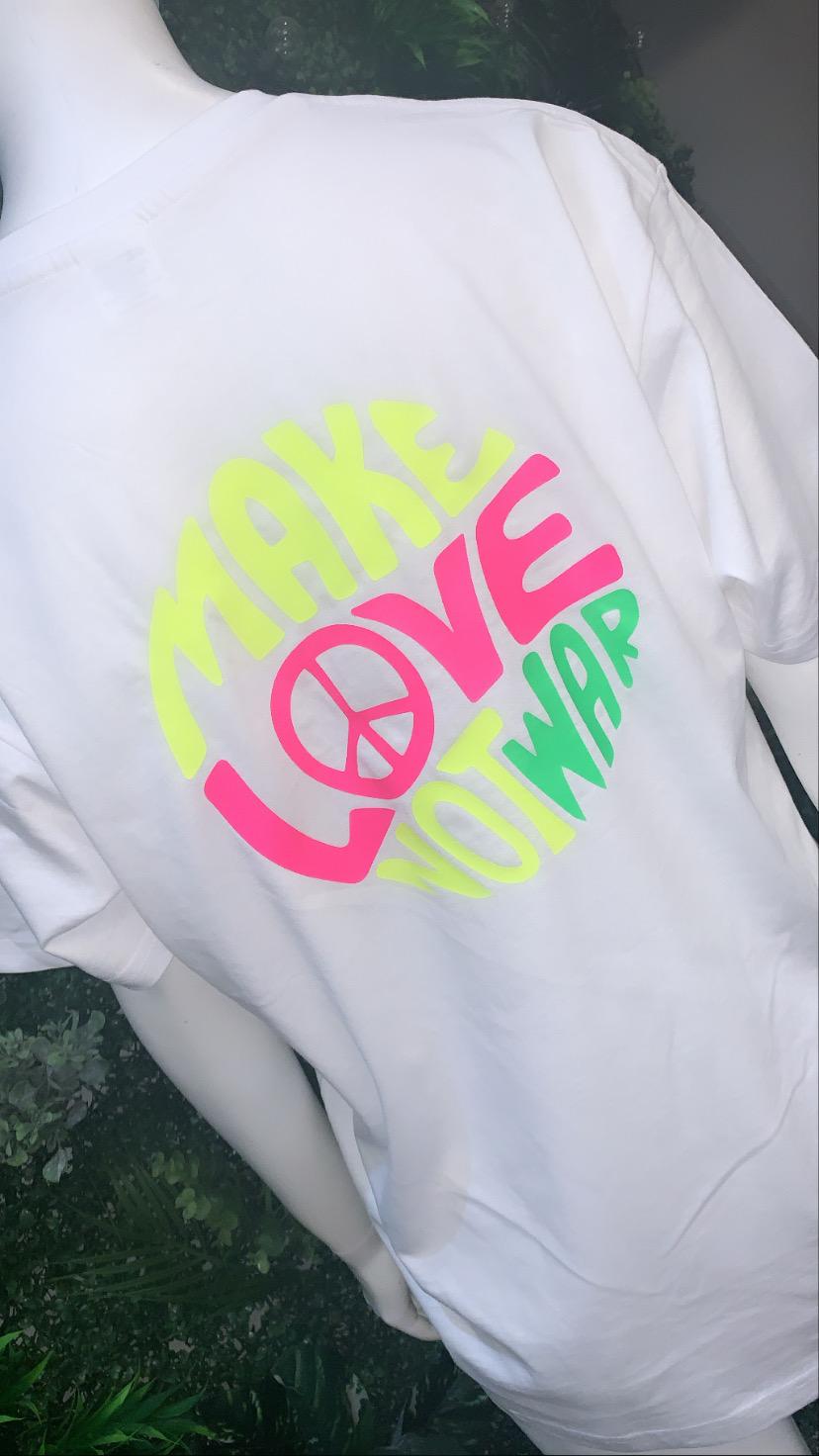 Make love not war T Shirt. Available in all colours. Available in sizes XS - XL.